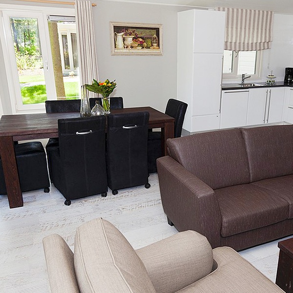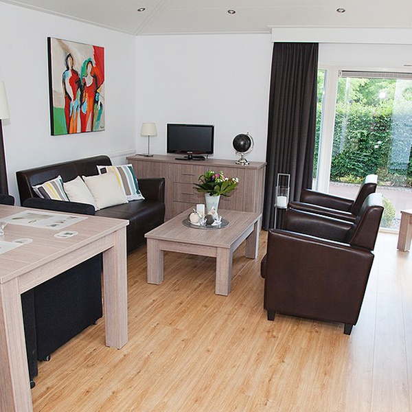 Bungalows mit Küche, Wohnzimmer, Bad und TV in Susteren in einem Ferienpark mit Innen- und Außenpool