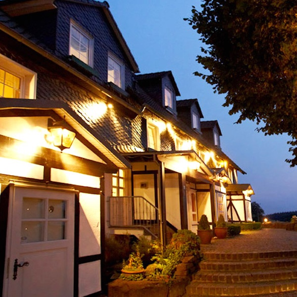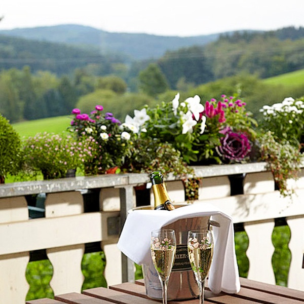 Das gemütliche Hotel Landgut Stüttem erwartet seine Gäste in Deutschland umgeben von Hügeln am Rande der Stadt Wipperfürth.