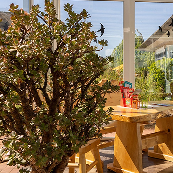 Für Erholung sorgt der hauseigene Wellnessbereich: „Unsere Sauna heizen wir auf Wunsch am Nachmittag für Sie an. Sie können den Bereich bis 20:00 Uhr nutzen. Kuschelige Bademäntel und Handtücher sind gegen Gebühr erhältlich.“ Zusätzlich steht ein kleines Hallenbad zur Verfügung.