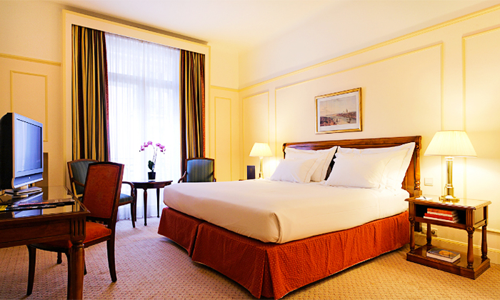 Das in den 30er Jahren erbaute Gebäude des Hotels Le Plaza Brussels bietet bis heute eine herrschaftliche Atmosphäre. Das zuvorkommende Service-Personal heißt alle Besucher in traditioneller Gastfreundschaft willkommen. Als First-Class-Herberge bietet es einen umfassenden Service, bei dem die Gäste rundum verwöhnt werden. Der Luxus-Traum beginnt bereits beim Frühstück: Ein reichhaltiges Frühstückbuffet wartet auf hungrige Gäste und sorgfältig eingedeckte Tafeln, machen den Tagesbeginn zu etwas ganz Besonderem. Das Concierge-Team an der Rezeption ist stets bereit, mit Geheim-Tipps und abwechslungsreichen Vorschlägen weiterzuhelfen, um die Tage in der Belgischen Hauptstadt zu einem echten Erlebnis werden zu lassen. Die luxuriös ausgestatteten Doppelzimmer verfügen alle über einen Schreibtisch mit Sitzgelegenheit, einen Safe, Telefon, Flatscreen-TV sowie ein Bad mit Haartrockner. Die Deluxe-Doppelzimmer bieten zusätzlich auf ihren zusätzlich auf ihren 34 qm eine kostenfreie Minibar.