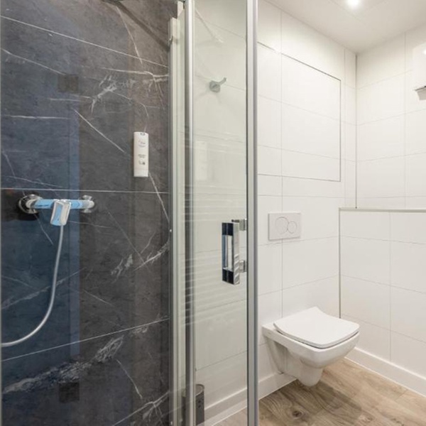 Die Zimmer sind funktional eingerichtet und verfügen über WLAN, Fernseher, Schreibtisch sowie ein eigenes Bad mit Dusche.