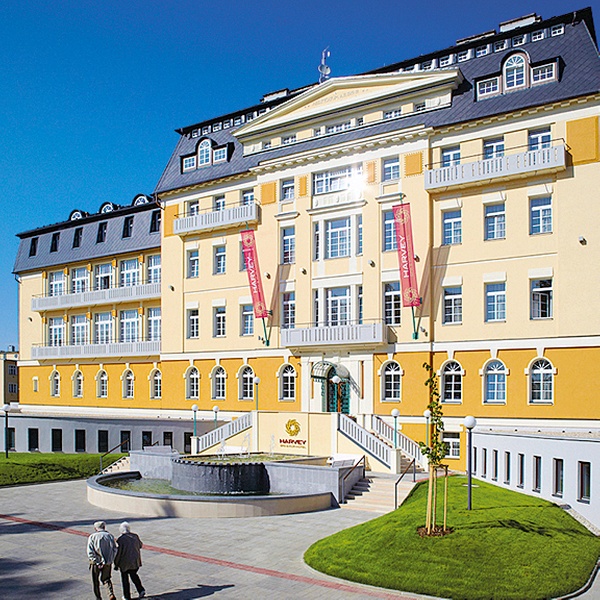 Das Spa & Kurhotel Harvey liegt in ruhiger Umgebung am Rand des Westparks. Das 1810 im neoklassizistischen Stil erbaute Haus empfängt nach einer umfassenden Restaurierung im Jahr 2010 seine Gäste auf modernem 4-Sterne-Niveau. Die etwa 20 bis 25 qm großen Standard-Zimmer bieten den Gästen wahlweise einen Blick auf den Park oder Hof und sind mit Dusch- oder Wannenbad, Föhn, WLAN, Sat-TV, Telefon, Safe, Bügelset, Zubereitungsmöglichkeiten für Tee und Kaffee, Minibar und Schreibtisch sowie Leihbademänteln ausgestattet. Das Hotelrestaurant bereitet morgens ein reichhaltiges Frühstücksbuffet für die Gäste vor. Halbpensionsgäste genießen hier auch ein Wahl-Menü, während für Vollpensionsgäste auch das Mittagessen inklusive ist. Das große Wellness-Zentrum verfügt über ein auf angenehme 30° beheiztes Schwimmbad mit Perlbad und Massagedüsen, Sauna und Dampfbad sowie Fitness-Bereich.