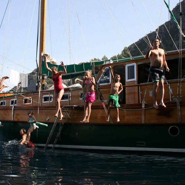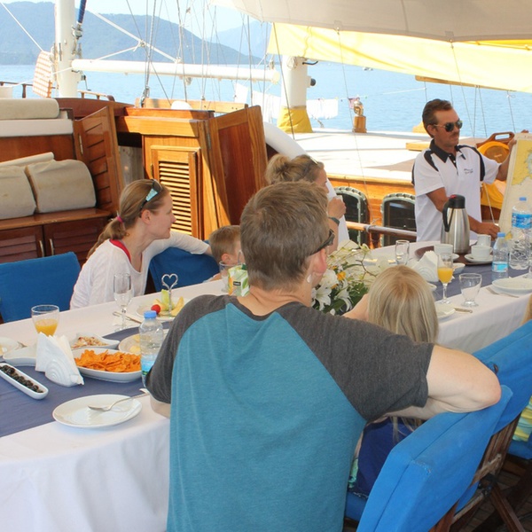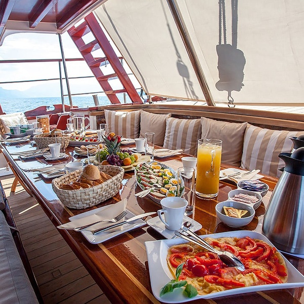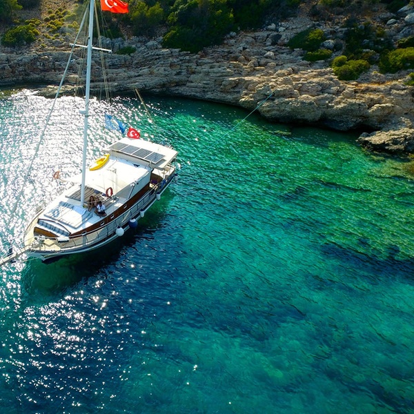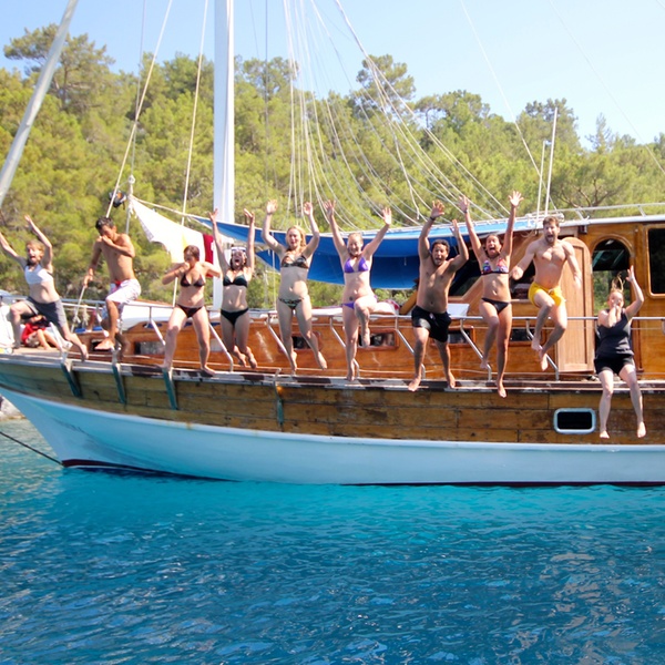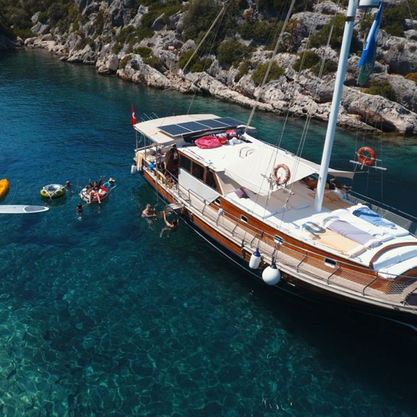 Das Boarding beginnt um 15:30 Uhr von der Marina von Kemer Çelebi. Der Service beginnt mit Abendessen und Übernachtung auf dem Boot an einem dieser Yachthäfen.