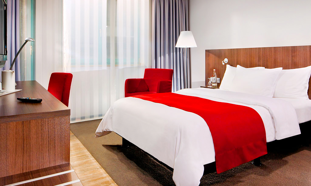 Im mit 4 Sterne ausgezeichneten Hotel Mercure Hotel Düsseldorf Hafen können Gäste in verkehrsgünstiger Lage unweit von Rhein, Medienhafen und der Altstadt nächtigen. Die klimatisierten Zimmer verfügen über WLAN, LCD-Fernseher, Kühlschrank und Safe. Für das leibliche Wohl sorgt die hoteleigene Brasserie La Vie mit ihrem vielfältigen Angebot an internationalen und regionalen Spezialitäten. Bei gutem Wetter steht den Gästen außerdem die Sommerterrasse der Brasserie zur Verfügung. Mit Option 2 dürfen Groupon-Kunden zusätzlich am Anreisetag ein 3-Gänge-Menü im Hotel genießen. Und wer sich trotz Urlaub fit halten möchte, kann im angrenzenden Sportclub kostenfrei trainieren.