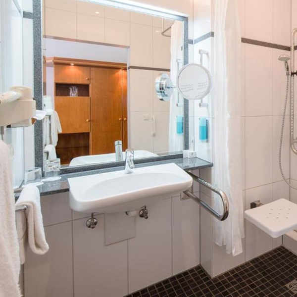 Das Hotel verfügt über 57 Zimmer, meist mit eigenem Bad, Dusche oder Badewanne, Haartrockner, Schreibtisch, Fernseher und kostenfreiem WLAN. Die Zimmer sind schallisoliert und mit Verdunkelungsvorhängen ausgestattet, was ruhigen Schlaf ermöglicht. Eine Tiefgarage bzw. Parkmöglichkeiten sind vorhanden.