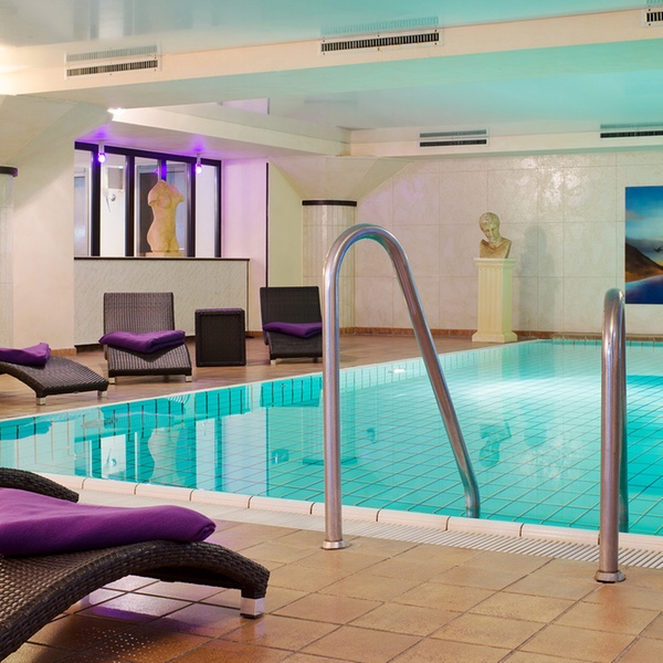 Der hauseigene Wellness-Bereich mit Pool, Sauna, Ruhe- und Fitnessraum steht den Gästen zur Verfügung.