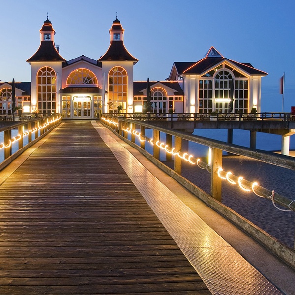 Seit Ende des 19. Jahrhunderts strömen die Badegäste nach Binz an der Ostküste der Insel Rügen, um bei Spaziergängen auf dem kilometerlangen weißen Sandstrand und einem Bad in den erfrischenden Wellen der Ostsee Erholung zu finden oder sich vor der Kulisse der weißen Villen im Stil der Bäderarchitektur von ihrer schönsten Seite zu zeigen. Lohnenswerte Ausflüge führen zum nahegelegenen Jagdschloss Granitz, zum als längstem Gebäude der Welt bekannten „Koloss von Prora“ oder eine Fahrt mit der Dampfschmalspurbahn “Rasender Roland” nach Sellin oder Putbus.