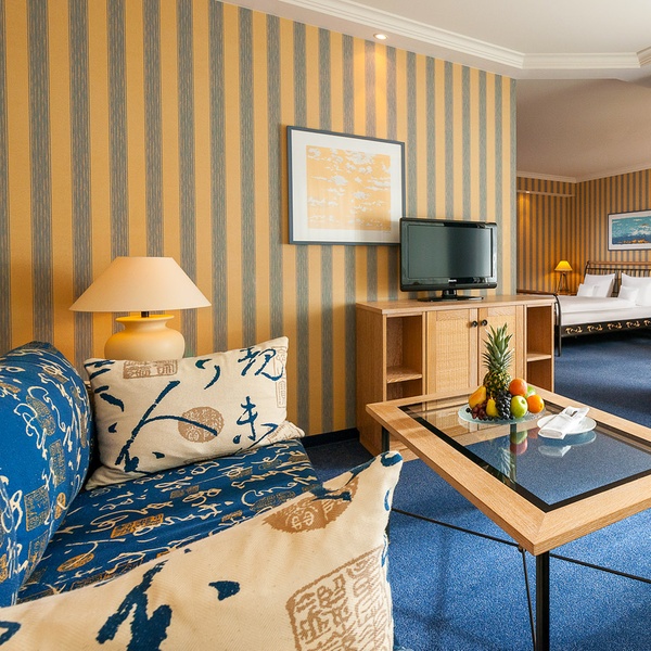 Das 4-Sterne-Dorint Strandhotel Binz Rügen befindet sich direkt an der Strandpromenade von Binz mit Blick auf die Ostsee und die berühmte Strandpromenade. Die Inneneinrichtung des Hauses besticht durch ihren südländischen Charme mit leichten Formen und warmen Farben. Das gilt auch für die geräumigen Suiten, die auf ihren 55 m2 einen getrennten Wohn- und Schlafbereich sowie Balkon oder Loggia mit seitlichem Blick aufs Meer bieten. Selbstverständlich gehören auch moderne Annehmlichkeiten wie Kabel-TV, Radio, Klimatisierung, Dusch- oder Wannenbad mit Bademantel und Badeschuhen zur Einrichtung dazu. Morgens empfängt das Frühstücksrestaurant „Baltico“ die Gäste mit einem reichhaltigen Sekt-Frühstücksbuffet, das für Langschläfer bis 12 Uhr bereitgehalten wird. Auch die Entspannung kommt während des Urlaubs nicht zu kurz: Im großzügigen Wellness-Bereich stehen den Gästen auf 430 m2 ein Indoor-Pool, Saunen und Fitnessraum zur Verfügung.