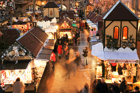 Elsass sei die Wiege der Weihnachtstradition, heißt es, und tatsächlich gibt es den Weihnachtsmarkt bereits seit dem Mittelalter. Im Jahre 1570 wurde er dem Jesuskind gewidmet und bekam so den Namen „Christkindelsmärik“. Handwerkliche Erzeugnisse, Weihnachtsschmuck und natürlich viele Gaumenfreuden, wie Lebkuchen, Bredele, Männele und Gänseleberpastete begeistern rund um den Riesenweihnachtsbaum auf dem Place Kléber und den Bredele-Markt.