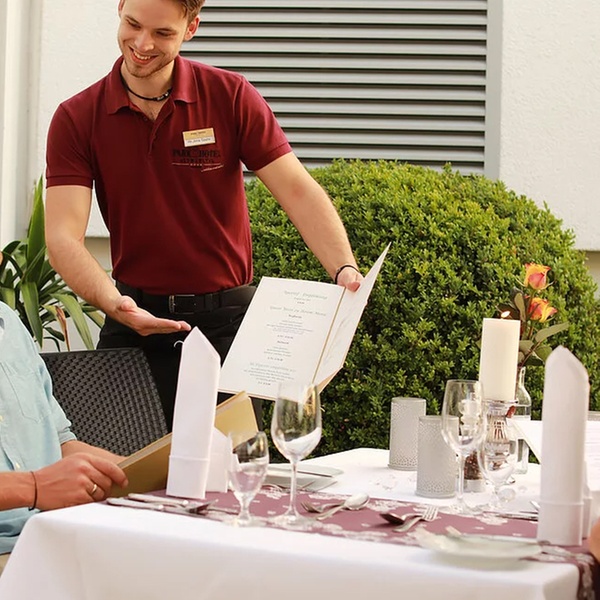 • Verwöhn-Halbpension am Abend als 3-Gang-Menü mit 4 verschiedenen Hauptgängen zur Wahl und Salat vom Buffet