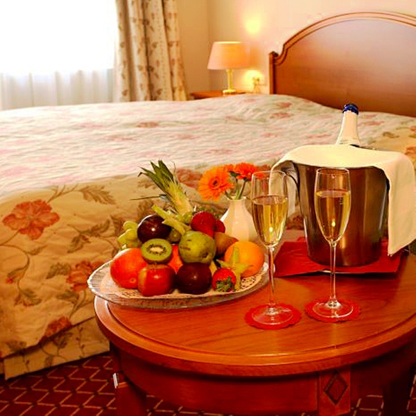 In allen Optionen inklusive: Preis für 2 Personen, Doppelzimmer, Halbpension (ohne Getränke), Nutzung von Schwimmbad, Wirlpool, finnischer Sauna und Dampfbad, Parkplatz.