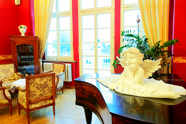 1, 2 oder 3 ÜN/F für 2 Pers. im großen Schloss-DZ. Beinhaltet WLAN, 1x Wellness-Romantikbad mit Sekt und Pralinen, Leihbademantel, Transfer von/zum Bahnhof Trebnitz.