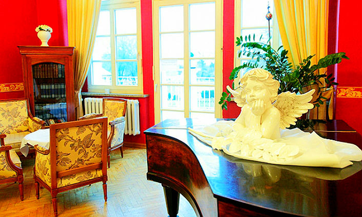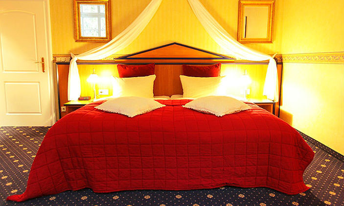 Wahrlich herrlich lacht das Ambiente und die stilvolle Gartenanlage des Parkhotel Schloss Wulkow ankommende Gäste an. Im komfortablen großen Schloss-Doppelzimmer lädt die klassische Einrichtung zum Entspannen ein. Das morgendliche Frühstück wird im weitläufigen Speisesaal gereicht. Im Deal inbegriffen ist ein Wellness-Romantikbad mit Sekt, Pralinen und Bademantel zum Wohlfühlen. Massagen oder eine Lymphdrainage können auf Wunsch auch dazu gebucht werden. Das hoteleigene Restaurant bietet regionale Speisen an.