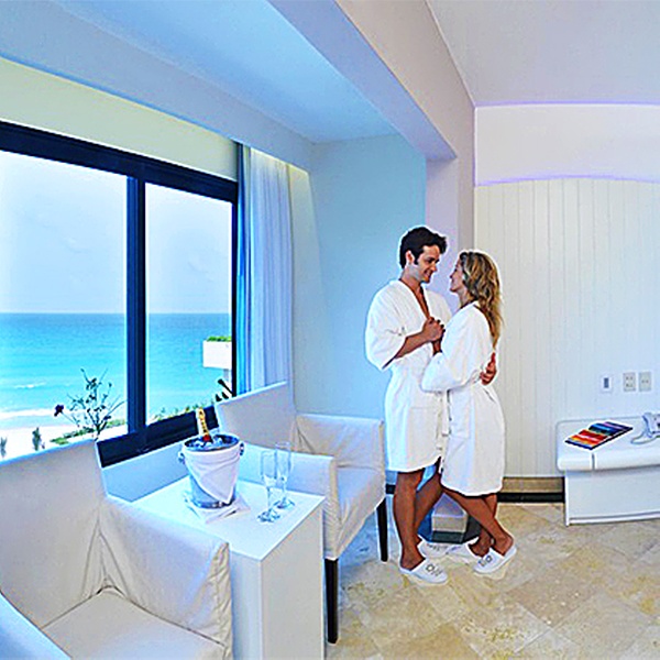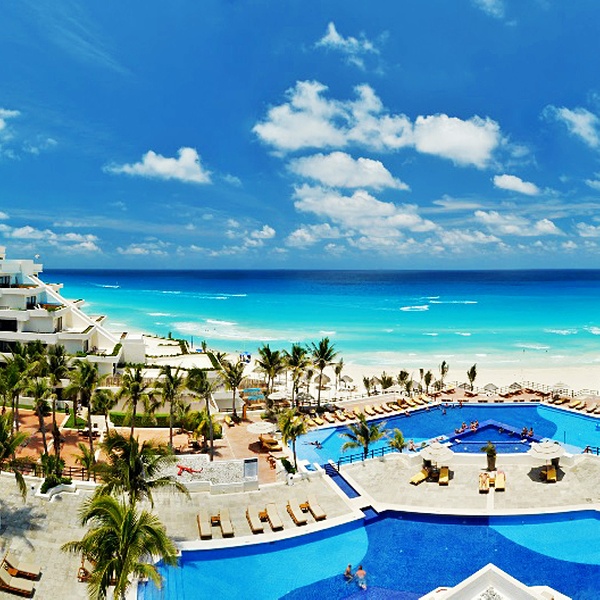 In allen Optionen inklusive: Preis für 2 Erwachsene, Standard-Doppelzimmer, Gourmet All Inclusive, Zugang zum Privatstrand des Hotels, Transfer vom/zum Flughafen Cancun.