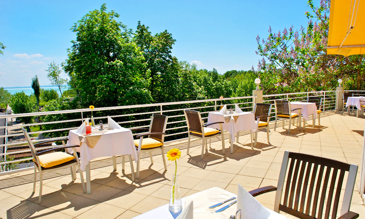 Herrliche Bade- und Wassersporterlebnisse können die Reisenden am großen Privatstrand des Hotels genießen: Hier stehen ein Beachvolleyball-Feld, Umkleidekabinen, Liegestühle sowie Leihtretboote und -kajaks bereit und auch fürs kulinarische Wohl wird hier gesorgt. Doch auch an anderen Stellen lockt der größte See Mitteleuropas Wasserratten und -sportler. Aktivurlauber können Speedboote mieten, an Segelkursen teilnehmen, den hotelnahen Tennisplatz nutzen oder den nahe gelegenen Golfplatz aufsuchen. Wer edle Tropfen schätzt, besucht eines der zahlreichen Weingüter rund um den See, und Wellness-Freunde finden ein großes Angebot an Heil- und Thermalbädern in der ehemaligen vulkanisch aktiven Region vor. Naturfreunde schwingen sich aufs Fahrrad und erkunden die eindrucksvolle, mediterran wirkende Landschaft um den Plattensee oder besuchen Naturschutzgebiete wie den Naturpark Balaton-Oberland. Im nahe gelegenen Städtchen Balatonfüzfö wartet darüber hinaus mit dem Abenteuerpark ein echtes Erlebnis für Klein und Groß.