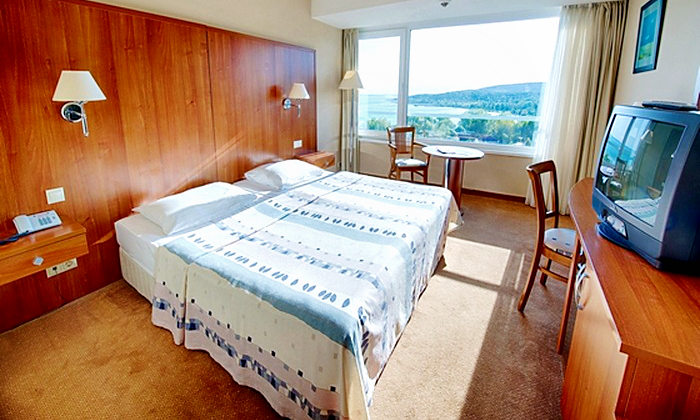 Das mit vier Sternen versehene Ramada Hotel & Resort Lake Balaton erhebt sich majestätisch über das Strandresort Balatonalmádi und bietet einen herrlichen Blick auf das „ungarische Meer”. Ein grüner ruhiger Park von rund zwei Hektar umfasst das Hotel und der hoteleigene, rund 6700 qm große Privatstrand verspricht exklusive Bade- und Wassersporterlebnisse. Das Hotel ist ganz auf Erholung eingestellt, wie ein Besuch im Wellnessclub beweist: Hier dürfen die Gäste nicht nur das beheizte 25 m-Schwimmbecken genießen, sondern auch den Whirlpool, ein Türkisches Bad, ein Kneipp-Becken sowie eine Finnische- wie auch eine Infrarotsauna. Das Verwöhnprogramm wird durch ein reichhaltiges Frühstücksbuffet im amerikanischen Stil sowie ein Buffet-Dinner im Restaurant Sirocco elegant abgerundet. Die Gäste logieren in circa 24 qm großen Zimmern mit Klimaanlage, Safe, WLAN, Sat-Fernseher mit Pay-TV und Badezimmer mit Wanne. Von hier aus wird ihnen ein herrlicher Panoramablick über den Balaton geboten.