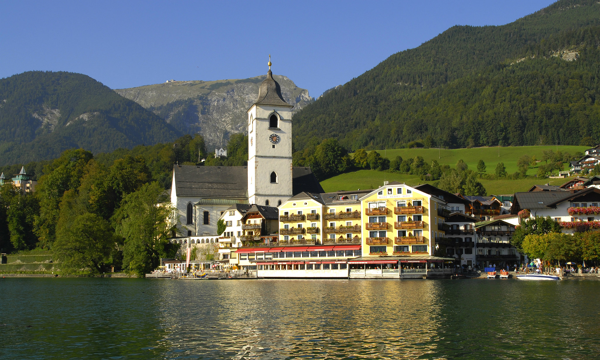 St. Wolfgang liegt nur ca. 50 Minuten von der Mozart- und Festspielstadt Salzburg entfernt, aber natürlich bietet das Salzkammergut mit den Urlaubsorten St. Wolfgang, Strobl und St. Gilgen schon genug Abwechslung, um mehr als einen Traumurlaub hier zu verbringen. Wandernd, auf dem Mountainbike oder laufend lässt sich die nähere Umgebung wunderbar erkunden, aber auch vom See aus ist der Ausblick auf die Berge nicht zu verachten. Unnötig zu erwähnen, dass Kultur und Brauchtum hier groß geschrieben werden: Operettenabende, Kurkonzerte, kirchliche Feste und literarische Festivals sorgen das ganze Jahr über für Abwechslung.