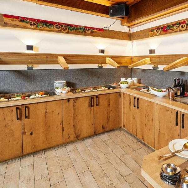 Für das leibliche Wohl der Gäste wird im hoteleigenen Restaurant gesorgt. Dort werden allerlei bayerische Schmankerl und internationale Gerichte zubereitet. Das reichhaltige Frühstücksbuffet mit täglich frisch gebackenen Brötchen und einer umfangreichen Auswahl an selbst hergestellten Produkten garantiert einen guten Start in den Tag.
