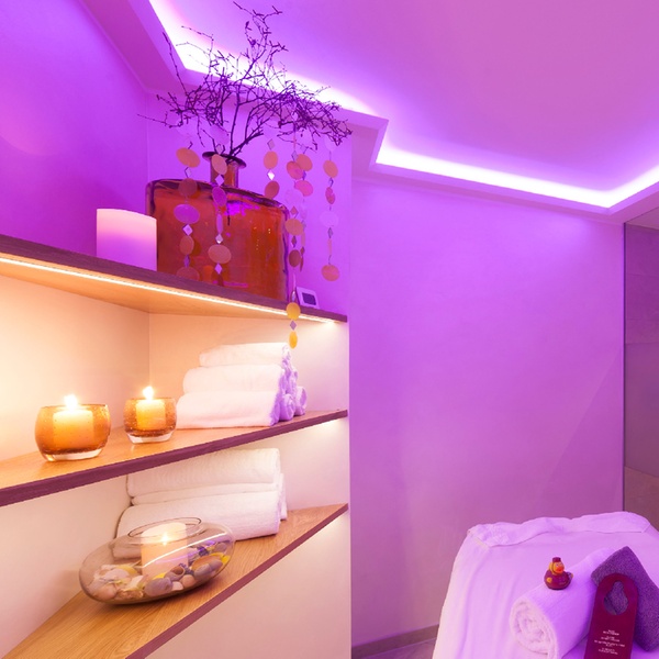 Pure Entspannung für Körper, Geist und Seele finden die Gäste im hoteleigenen Wellnessbereich mit Infrarotkabine, Innen- und Außensauna, Dampfbad, Dachterrasse und verschiedenen Massage-Angeboten.