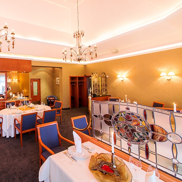 - Im Restaurant Schlossstube oder in der gemütlichen Weinstube mit Buntglasfenstern werden regionale, hausgemachte Gerichte sowie internationale Speisen und erlesene Weine serviert.