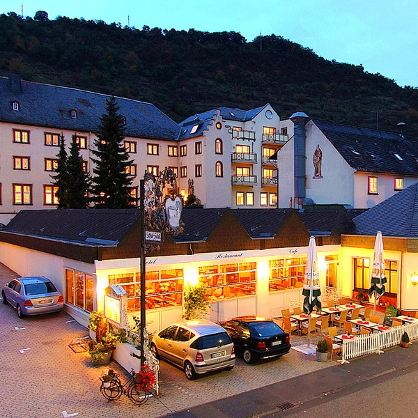 Das seit 1895 familiengeführte, historische 4-Sterne-Schloß-Hotel Petry befindet sich im malerischen Stadtteil Karden, nahe der Burg Eltz, und nur 200 m von der Mosel entfernt.