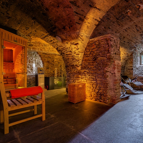 In den Kellergewölben des Schlosses erwarten die Gäste eine finnische Sauna und eine Dampfgrotte sowie das Schwimmbad. Für die zahlreichen angebotenen Behandlungen im Wellness-Bereich ist es empfehlenswert, im Voraus zu buchen.