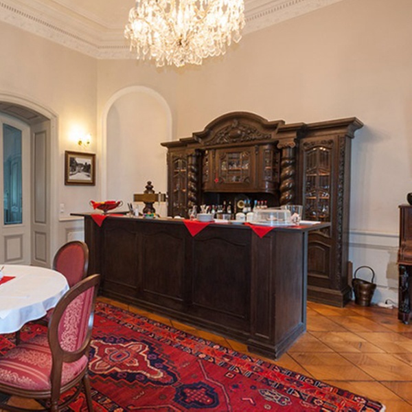 Das reichhaltige Frühstück wird jeden Morgen im Speiseraum des Hotels serviert. Die Gäste können sich in der gemütlichen Atmosphäre der Bar oder auf der Schlossterrasse entspannen und gekühlte Getränke sowie Kaffee-Spezialitäten, Tee, Kuchen oder Obst genießen. In der Nähe vom Hotel befinden sich viele Gaststätten. Die Gäste haben viele Möglichkeiten, regionale Speisen und ausgezeichnete Spezialitäten zu genießen. Das Personal kann Lokale empfehlen und Restaurantreservierungen vornehmen.