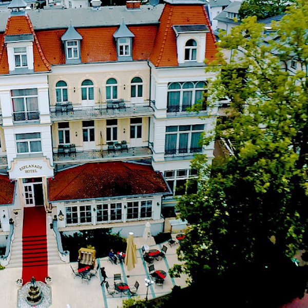 Das Hotel Esplanade liegt mittendrin im Zentrum des Seebades Heringsdorf und in unmittelbarer Nähe zum endlosen Ostseestrand. 1896 als Liebesbeweis für seine Angebetete von einem Hohenzollernprinzen als Schloss Dorothea erbaut, zeigt das bekannte Hotel in Heringsdorf über ein Jahrhundert später immer noch einen ganz besonderen Zauber. Die Fassade im Jugendstil ist ein beliebtes Fotomotiv.