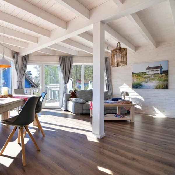 Die Häuser bieten auf 80–90 m² Platz für 4–6 Personen. In der oberen Etage befinden sich zwei separate Schlafräume mit Doppelbetten sowie ein Badezimmer mit Dusche und WC. Der ebenerdige Wohn- und Essbereich ist mit einer ausziehbaren Schlafcouch für zwei weitere Personen ausgestattet und hat direkten Zugang zur Holzterrasse. Zusätzlich gibt es ein barrierefreies Badezimmer im Erdgeschoss.