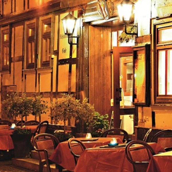 Im stilvollen Restaurant erlebst du echte Harzer Gastlichkeit. Warme Holztöne und gemütliche Sitzbereiche schaffen eine behagliche Atmosphäre, in der regionale Spezialitäten und saisonale Köstlichkeiten serviert werden. Besonders beliebt sind die hausgemachten Wurstspezialitäten, allen voran die traditionellen „Stolberger Lerchen“. In den warmen Monaten lädt der Freisitz direkt am Marktplatz dazu ein, bei gutem Essen das historische Flair der Stadt zu genießen. Am Morgen sorgt ein reichhaltiges Frühstücksbuffet für einen gelungenen Start in den Tag.