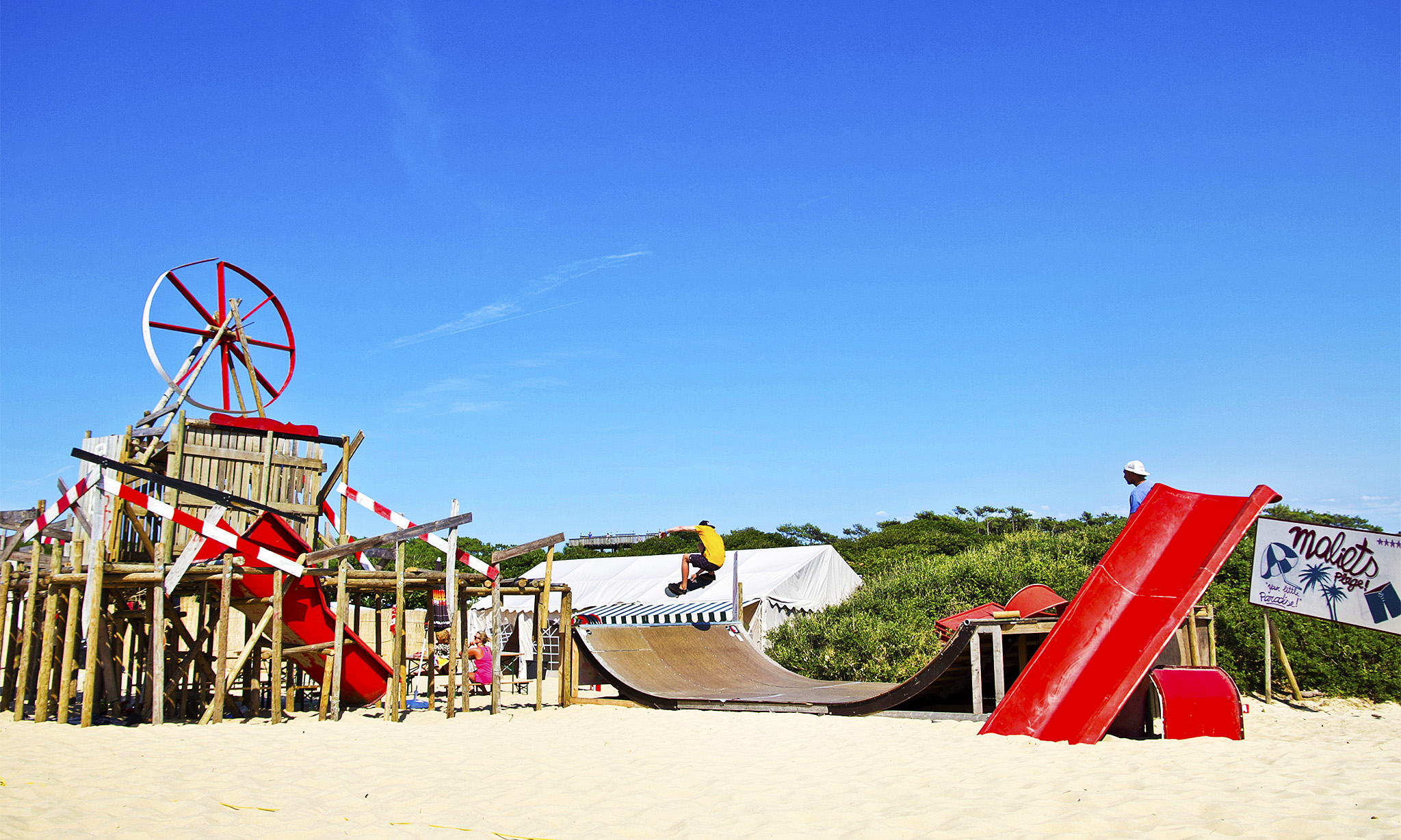 Ganz nah am Strand zwischen Pinienwald und Dünen gelegen, bietet der 4-Sterne-Campingplatz Saint Martin in Moliets direkt neben dem Surfcamp eine komfortable Unterkunft. Übernachtet wird in Vierer-Zelten mit Doppel-Abteilungen. Zwei Außen- und ein Innenpool ergänzen den Atlantik für Badefreuden. Daneben gibt es ein Volleyball-Court und eine Tischtennis-Anlage.