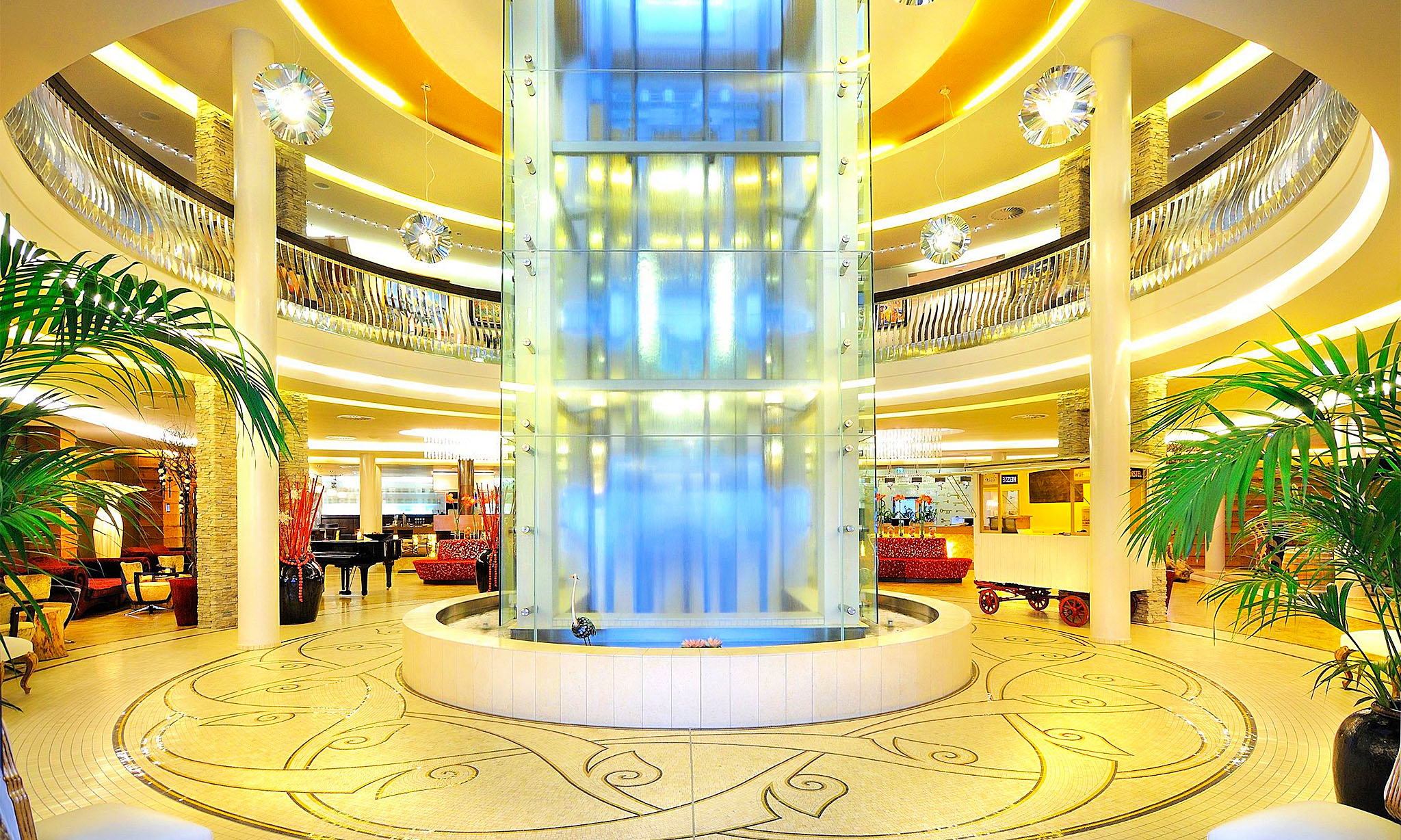 Das Nobelhotel Alpine Palace liegt im Zentrum von Hinterglemm am Fuße des Reiterkogels direkt neben dem Lift und etwa 25 km vom Bahnhof Zell am See entfernt. Zur hervorragenden Ausstattung des prächtigen 5-Sterne-Hauses zählen ein Restaurant, Speisesaal, Frühstücksraum, Bar, Café, Weinkeller, Aufenthaltsraum, Leseraum, Wintergarten, Stube, Terrasse sowie der ca. 4 x 8 m große Salzwasser-Swimmingpool, ein sonniger „Alpenstrand“ mit Strandkörben, ein ca. 2.000 m2 großer Wellnessbereich mit Hallenbad, Sauna, Felsendusche mit Eisbrunnen und Ruheräumen mit Wasserbetten sowie ein Fitnessraum. Die Einrichtungen des Wellnessbereichs dürfen während des gesamten Aufenthalts nach Belieben genutzt werden. Die komfortable Unterbringung erfolgt in der 80 m2 großen Alpine-Suite, die sich durch ein Schlafzimmer mit Wohnecke, Bad und Dusche/WC, Bidet, Doppelwaschtisch, 2 Flatscreen-TVs, Radio, Telefon, Minibar und Balkon sowie Zimmersafe auszeichnet. In einem 5-Sterne-Hotel ist natürlich auch die Verpflegung vom Feinsten: Die Dreiviertelpension versorgt die Gäste mit Frühstücksbuffet, Mittagslunch, einem 5-Gänge-Abendwahlmenü bzw. einmal wöchentlich am Samstag mit einem Galadinner.