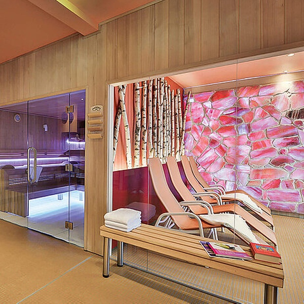Die Gäste können sich im Wellness-Bereich mit Innen- und -Außenpool, finnischer Sauna und Infrarotsauna bei einer Massage oder Beauty-Anwendung entspannen. Der Fitnessraum steht den Gästen auch zur Verfügung