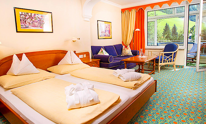 Das 4-Sterne Thermenhotel Sendlhof liegt mitten im Ortskern von Bad Hofgastein und besticht mit einer imposanten Naturkulisse – der den Ort umgebenden Bergwelt des Salzburger Landes – sowie mit der zentralen Lage inmitten vieler Restaurants, Cafés und Einkaufsmöglichkeiten. Gäste übernachten im Doppelzimmer „Elegance“, das auf ca. 30 qm über eine Sitzecke, ein Bad mit Dusche und Haartrockner, Flat-TV, kostenfreies WLAN und einen entzückenden Wintergarten verfügt. Ein reichhaltiges Frühstücksbuffett mit Eiergerichten und Omelettes lockt aus den Federn, kleine Snacks wie Suppen und hausgemachter Kuchen sorgen für Stärkung zwischendurch und am Abend verwöhnt ein großes Salatbuffet und ein 5-Gänge-Wahlmenü den Gaumen. Die Nutzung der umfangreichen Wellnesswelt mit Thermalwasser-Badelandschaft, Refugium, Massagebecken, Whirlpool, Sauna-Lounge, Dampfgrotte, Infrarot-Design-Sauna sowie einer romantischen Blockhaus-Schwitzstube und einem Kristall-Thermalhallenbad ist im Deal inbegriffen. Eine 50-minütige Shiatsu-Anwendung pro Person und Aufenthalt sorgt ebenfalls für wohlige Entspannung.