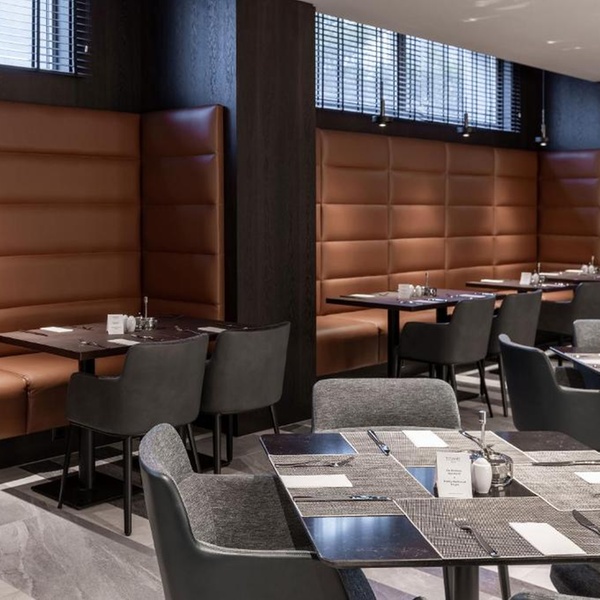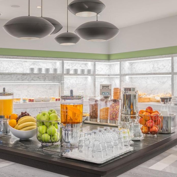 Im hoteleigenen Restaurant wartet morgens ein köstliches mediterranes Frühstücksbuffet, tagsüber und abends leichte Snacks und eine Auswahl an Getränken auf seine Gäste. Die modern eingerichtete Lobby und der urbane und gemütliche Wintergarten mit Bar bieten einen Raum zur Entspannung.