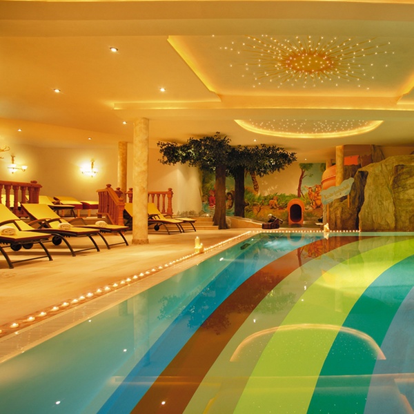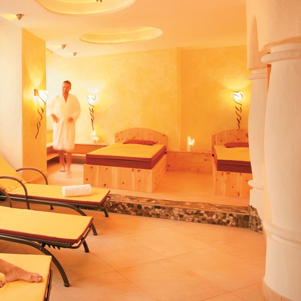 - Täglich Nutzung des ca. 1.500 qm großen Wellness-Bereichs Saunadörfl (Kinder haben keinen Zutritt) mit folgenden Einrichtungen: Tiroler Sauna, Bio-Sauna, Rosenblüten-Bad, Sole-Dampfbad, Infrarotkabine, Erlebnisdusche und Wasserfall