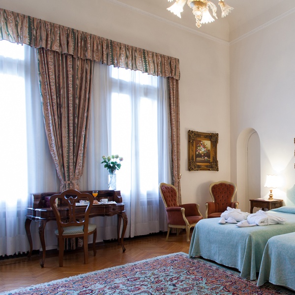 Das 4* Hotel Villa Soligo (Seehöhe ca. 152 Meter) befindet sich rund 1,5 km vom Zentrum entfernt und bietet den Gästen neben den insgesamt 116 Wohneinheiten eine einladende Empfangshalle mit Sitzgelegenheit, eine Rezeption, einen Gepäckaufbewahrungsraum, einen Aufenthaltsraum sowie einen großen Park.