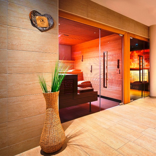 Das Hotel verfügt über einen Wellness und Spa-Bereich auf einer Fläche von 1000 qm. Dieser ist mit einem beheizten Innen- und Außenpool, Ruheräumen, 6 verschiedenen Saunen, Eisbrunnen, Kneippwannen, Erlebnisduschen, Tee und Äpfel zur freien Entnahme und zahlreichen Behandlungen und Pflegen.