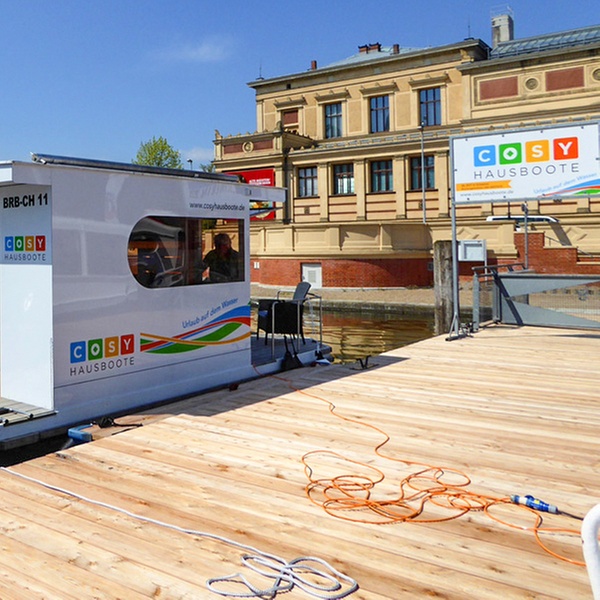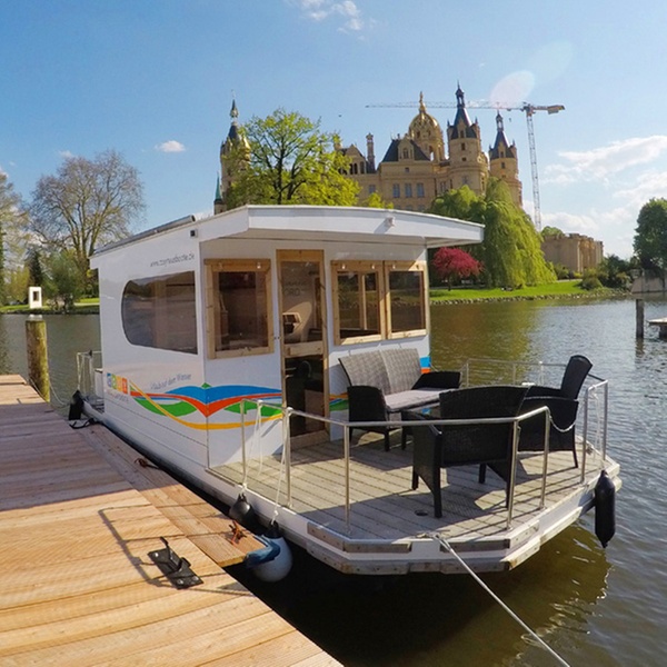 Adresse: Am Steg No.8 der Weißen Flotte Schwerin (direkt am Schweriner Schloss), Werderstraße 140, 19055 Schwerin, www.cosyhausboote.de.