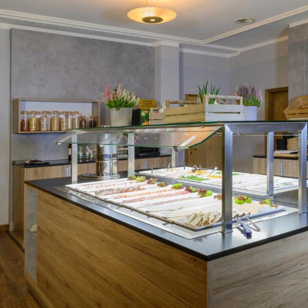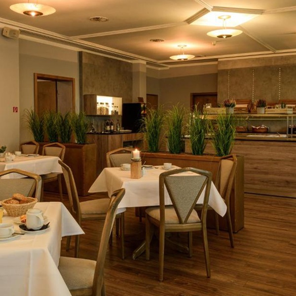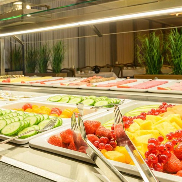 - Halbpension: Frühstücksbuffet und Abendessen als Buffet oder 3‑Gänge-Menü