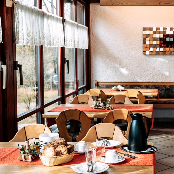 Im hoteleigenen Restaurant werden internationale und regionale Speisen serviert. Die Gäste können sich im Sommer im Naturbiergarten aufhalten und den herrlichen Blick auf die bayrische Landschaft genießen. Den Tag können die Gäste bei einem Glas Wein oder frisch gezapftem Bier im Wintergarten ausklingen lassen.