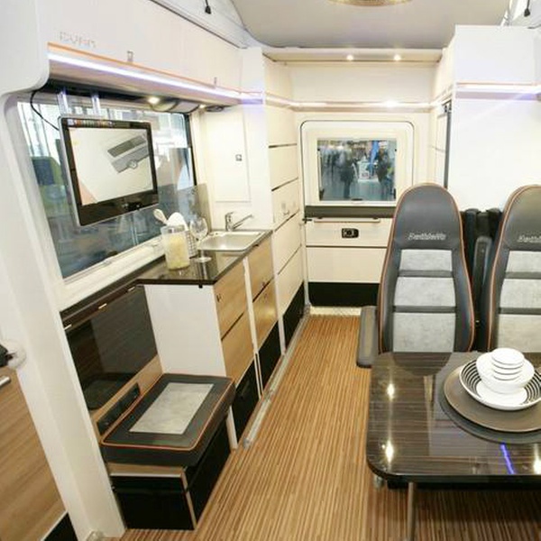 Unabhängigkeit und Individualität sind die Stichwörter für Reisemobile Koestner in Mosbach, die ständig bestrebt sind, außergewöhnliche Fahrzeugangebote zu machen. Die Wohnmobile verfügen über 2,4 TDCi (155 PS/114 KW), 6-Gang-Getriebe, EURO 5 - Norm, ABS, Fahrerairbag, Tempomat, elektrische Fensterheber, Druckwasserpumpe Shurflo, Panoramadachluke Midi-Heki, hagelfestes Dach aus GFK, hagelfeste Seitenwände aus GFK, Heckabsenkung, große Heckgaragenklappe, Zwillingsbereifung, Heckantrieb, Markise 4.5 m, Auffahr- Rampen für Quad oder Motorrad, Sicherungsgurte und Anhängerkupplung bis 2 to. Zudem sind die nicht ganz alltäglichen Reisemobile mit Truma Gasheizung, Zentralverriegelung mit Fernbedienung und separater Dusche ausgestattet. Eine 7,5 m³ Garage (für 2 Motorräder oder 1 Quad) ist in das Wohnmobil integriert.