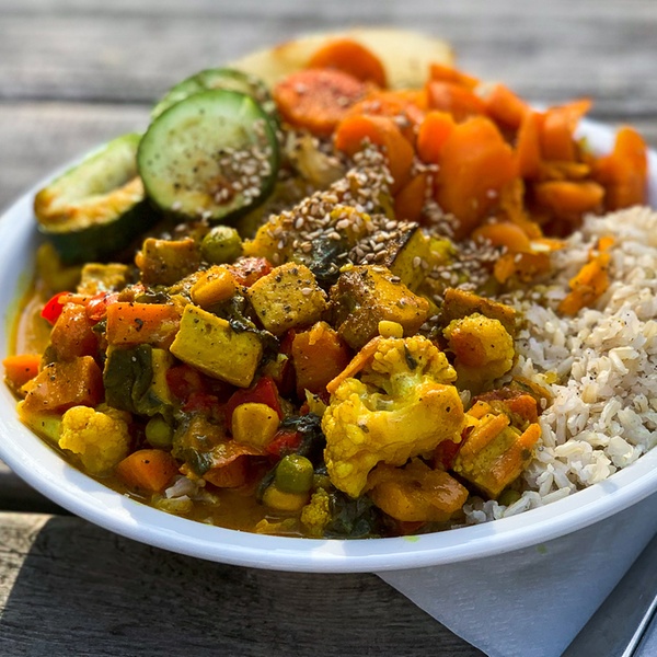 • Verpflegung (morgens zwischen 8 und 9, Obst zur Selbstbedienung, täglich 2x veganes Vollwertbuffet, während des ganzen Tages Tee und Wasser)