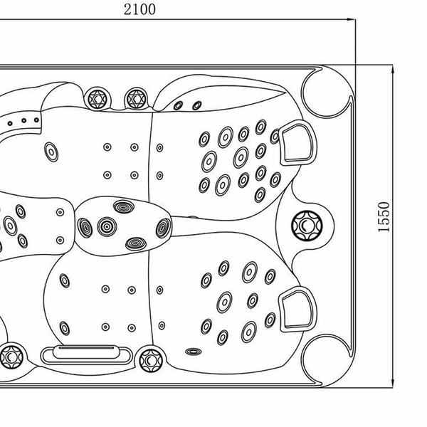 - 51 Massagedüsen: 9 x 12 cm Düsen, 28 x 8 cm Düsen, 14 x 5 cm Düsen