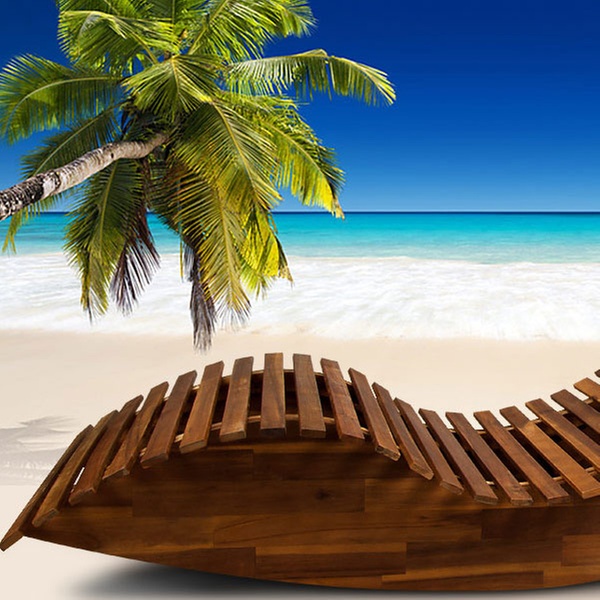 Diese ergonomische Schwungliege aus Akazienholz im modernen Design ist für eine tiefe Relaxation auf Terrasse oder im Garten