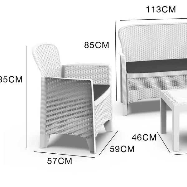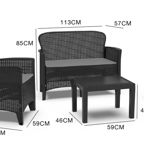 - 1x Sofa (L x B x H): 113 x 57 x 85 cm