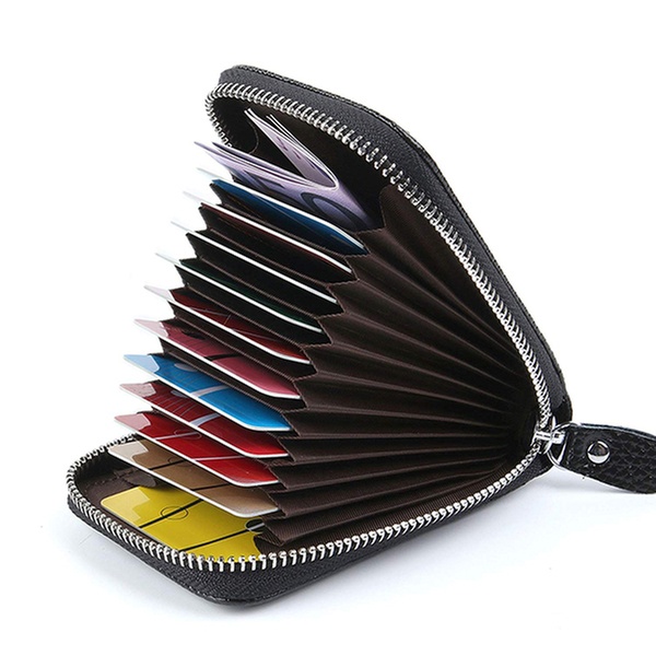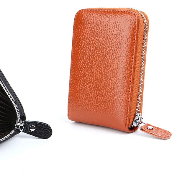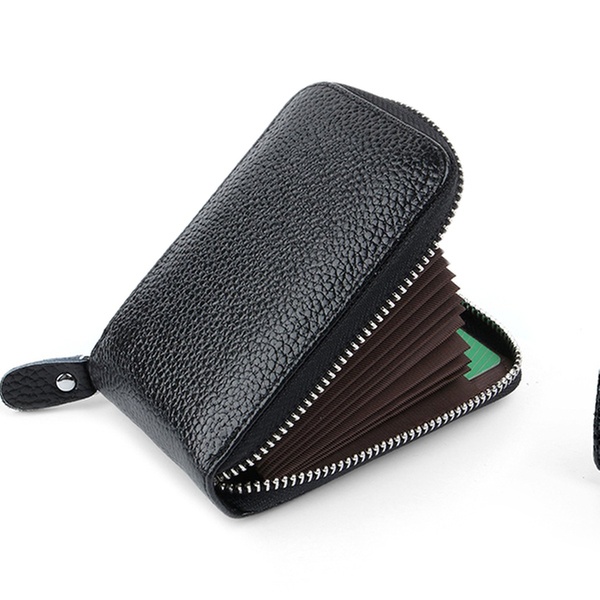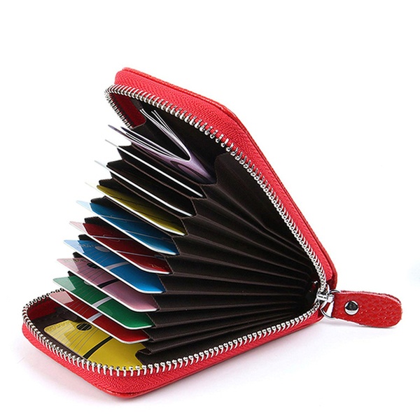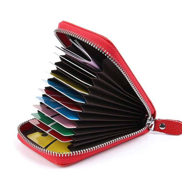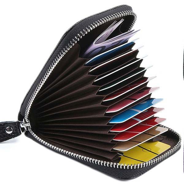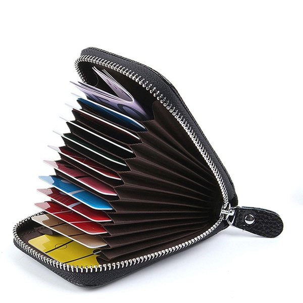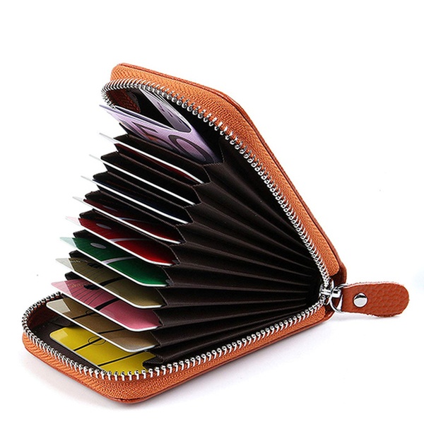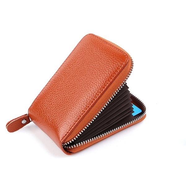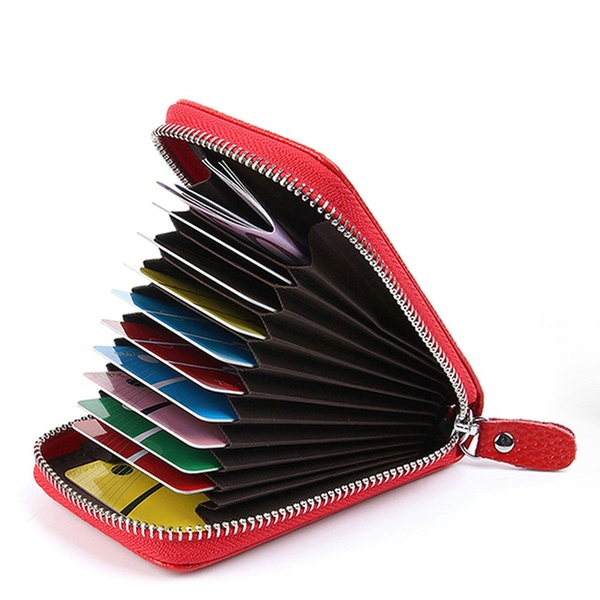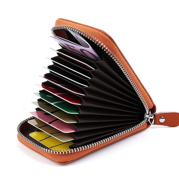 Diese Organizer-Tasche aus Leder für Karten ist mit RFID-Schutz gegen Datendiebstahl ausgestattet