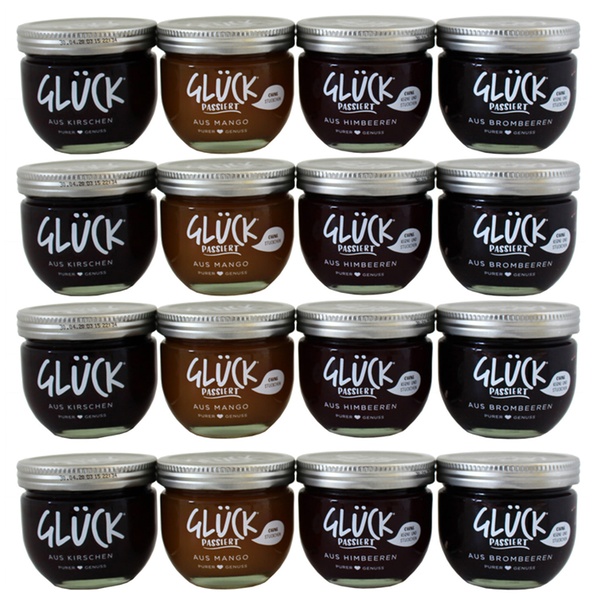 4x, 8x oder 16x GLÜCK Fruchtaufstrich Probier-/ Geschenkset 4 Sorten