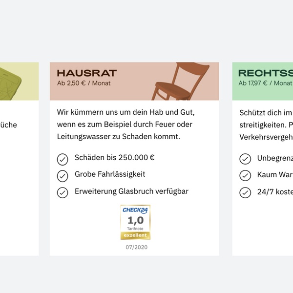 - Hausratversicherung (bis zu 6 Monate kostenlos)
