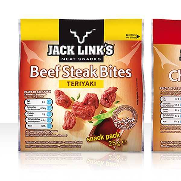 Wer kennt ihn nicht, den Appetit zwischen den Mahlzeiten? Eine pikante Alternative zu Schokolade und Co. sind die Jack Link’s Meat Snacks, die in verschiedenen Variationen zu haben sind. Die mundgerechten Stücke – ideal für unterwegs, beim Sport oder bei der Arbeit – sind schonend gegart und langsam an der Luft getrocknet. Option 1 beinhaltet ausschließlich die saftigen Chicken Bites mit maximal 5% Fett, die in den Geschmacksrichtungen indisch-orientalisches Curry und würzig-pikante Flamin’ Buffalo mit Cayenne-Pfeffernote geliefert werden. Option 2 enthält neben den Chicken Bites zusätzlich die Beef Steak Bites in der exotischen Geschmacksvariation Teriyaki. Um nur 100 Gramm feine Beef Steak Bites herzustellen, werden übrigens ganze 240 Gramm Rindfleisch benötigt.